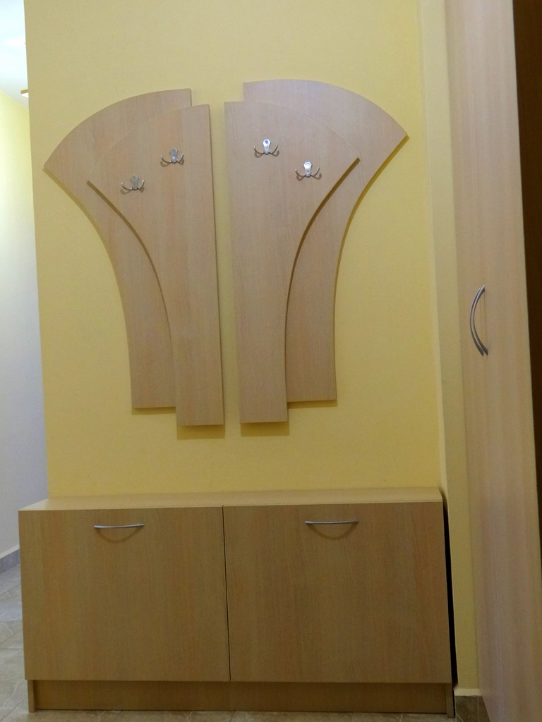 Комплексно обзавеждане за коридора включва гардероче за връхни дрехи, шкафове за обувки и пано със закачалки. Шкафа за обувки с паното със закачалки е решен с механизми за обувки, за да се спести от дълбочината. Втория сет е съставен от шкаф за връхни дрехи и малък шкаф за обувки на рафтове със пано с огледало и закачалки. Комплекта е изпълнен в цвят бреза. Моделите се изработват в богата цветова гама и по индивидуални размери.