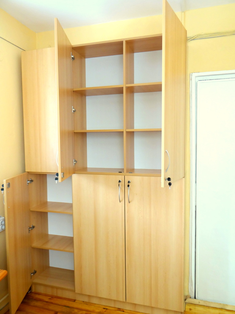 Този шкаф е съобразен и изработен за съхранение на класьори с документи. Вратите се заключват за по голяма сигурност. Моделът се изработва в богата цветова гама и индивидуални размери на клиента.