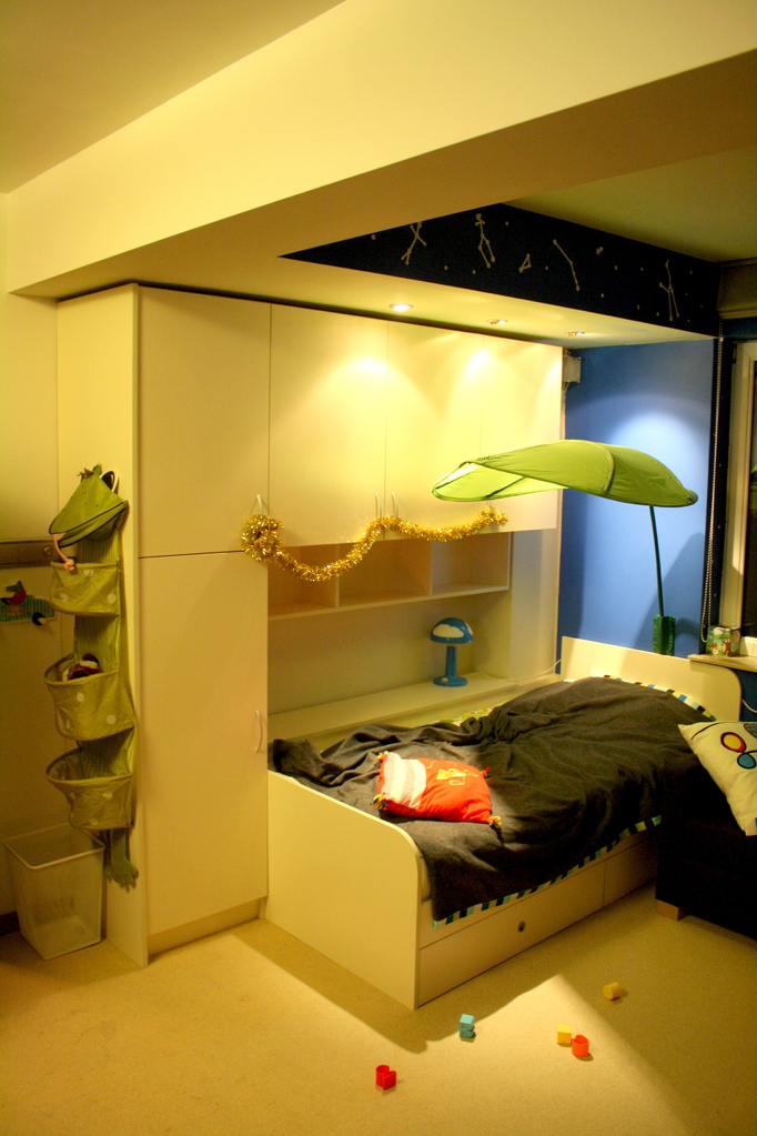 Детското обзавеждане за тази детска стая е раздвжено и нестандартно, като търсен резултат е също и функционалността на мебелите, така че да остане достатъчно място за игра в стаята. Детската стая непрекъснато се променя с порастване на детето, затова ние ви предлагаме детско обзавеждане подходящо за повече възрастови групи. Това ви дава възможността да смените само текстила и аксесоарите, без да е нужно да подменяте цялото детско обзавеждане на всеки 2 - 3 години. Избора на двойни или двуетажни легла или варианта с този модел леглото вдигнато върху гардероба пести много място и остава свободно пространство за различни занимания. Неутралния и свеж цвят на Ванилия прави модела универсален както за момичета така и за момчета. Всеки модел детска стая се изработва по поръчка в богата цветова гама и размери на клиента.