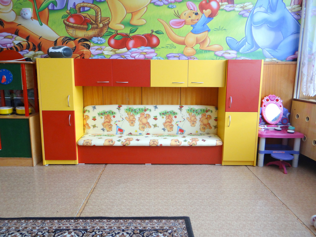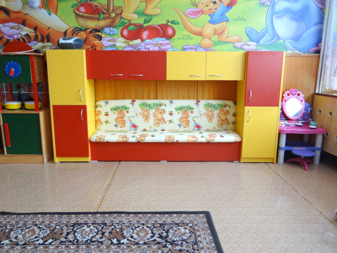 Детският кът за игра имитиращ обзавеждането на възрастните е едно от най-интерсните места за игра на малчуганите. Моделът може да бъде изработен по размери зададени от клиента в богата цветова гама. Детското обзавеждане се предлага и на разсрочено плащане.