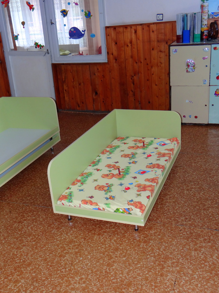 Легла за детски градини или детската стая с елегантен дизайн и заоблени форми с цел безопасност. Леглото е с подматрачни рамкии метални крака. Изработката е изцяло по поръчка в богата цветова гама от висококачествени материали.