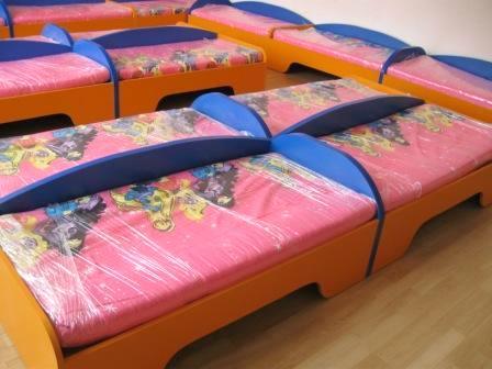 Единично детско легло стандартен размер за детски градини. Леглото се изработва в богата цветова гама по поръчка, както и по размери на клиента. Този модел детско легло е изцяло от ПДЧ, включително и подматрачната рамка, което гарантира стабилност и здравина. Моделът е със заоблени табли за повече сигурност и елегантност.
