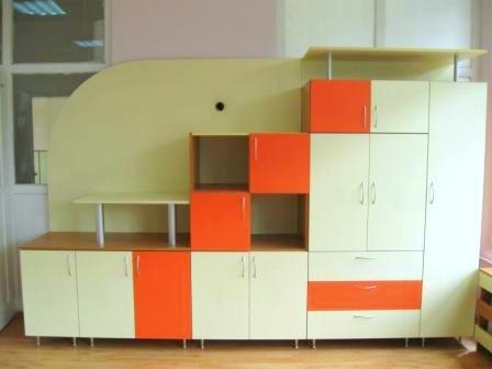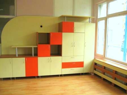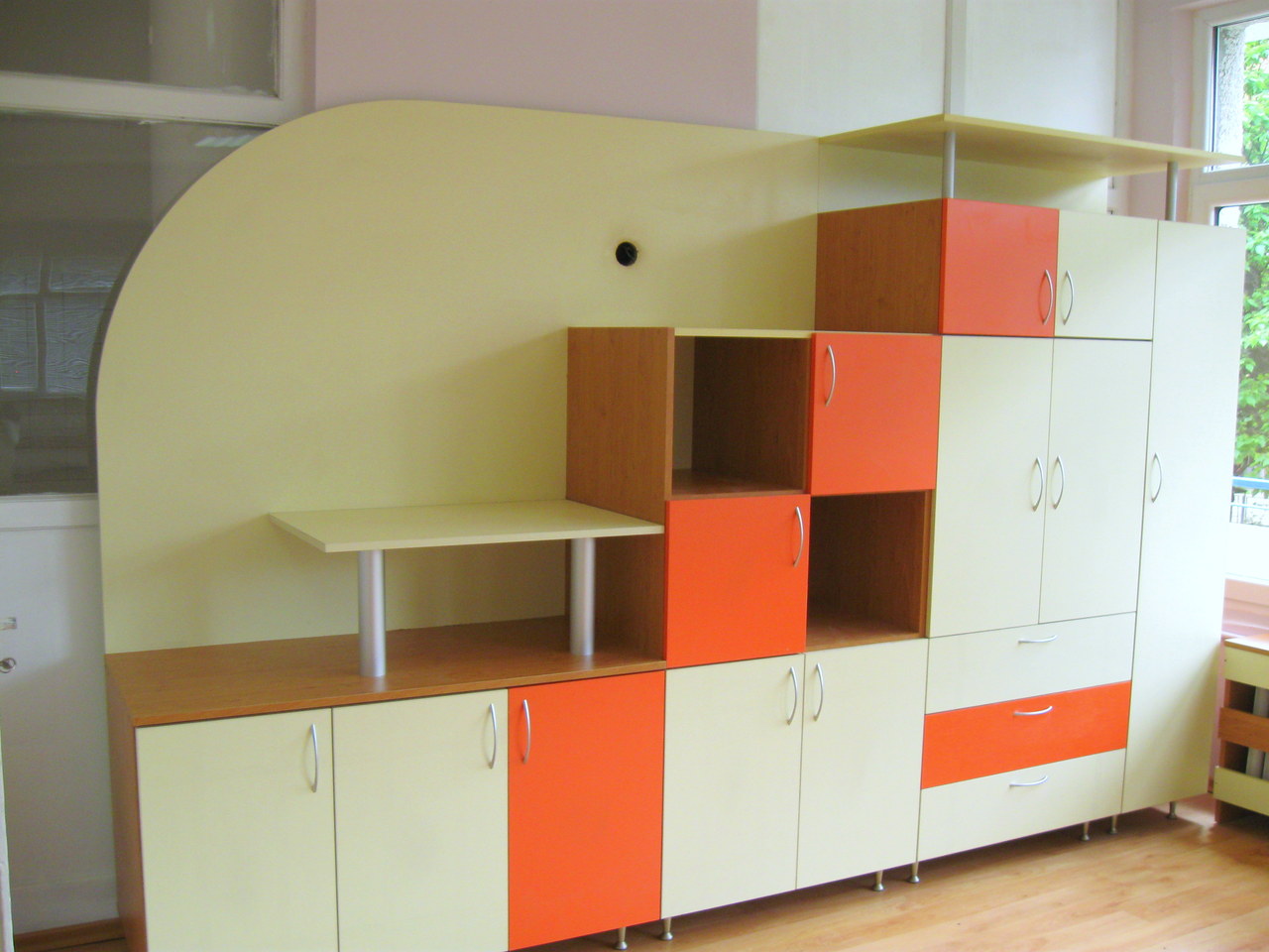 Шкафа е проектиран и изработен като част от цялостното обзавеждане за група в детска градина. Той е съобразен изцяло с нуждите на занималнята, като е разделена на модули с врати изцяло затворени за прибиране на консумативи, отворени части за играчки и рафт за телевизора и останалата техника. Всички дидактични шкафове се изработват изцяло по поръчка съобразени с останалото обзавеждане, възможностите на пространството и бюджета на детската градина. Предлагаме и също така и богат избор на цветови решения.