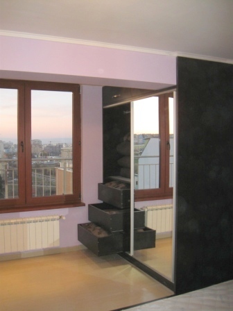 Този корпусен гардероб е много подходящ за спални помещения. Огледалните врати дават усещането за простор и светлина в пространството. Корпусът на този модел е изработен от висококачествени ПДЧ Венге, вратите са плъзгащи - изцяло огледални. Вътрешното разпределение е много функционално с лост за дрехи, чекмеджета за бельо и чорапи и рафтове. Моделът може да бъде изработен в богата цветова гама и индивидуални размери. Доставката и монтажа на мебелите по поръчка е напълно безплатен в рамките на гр. София.