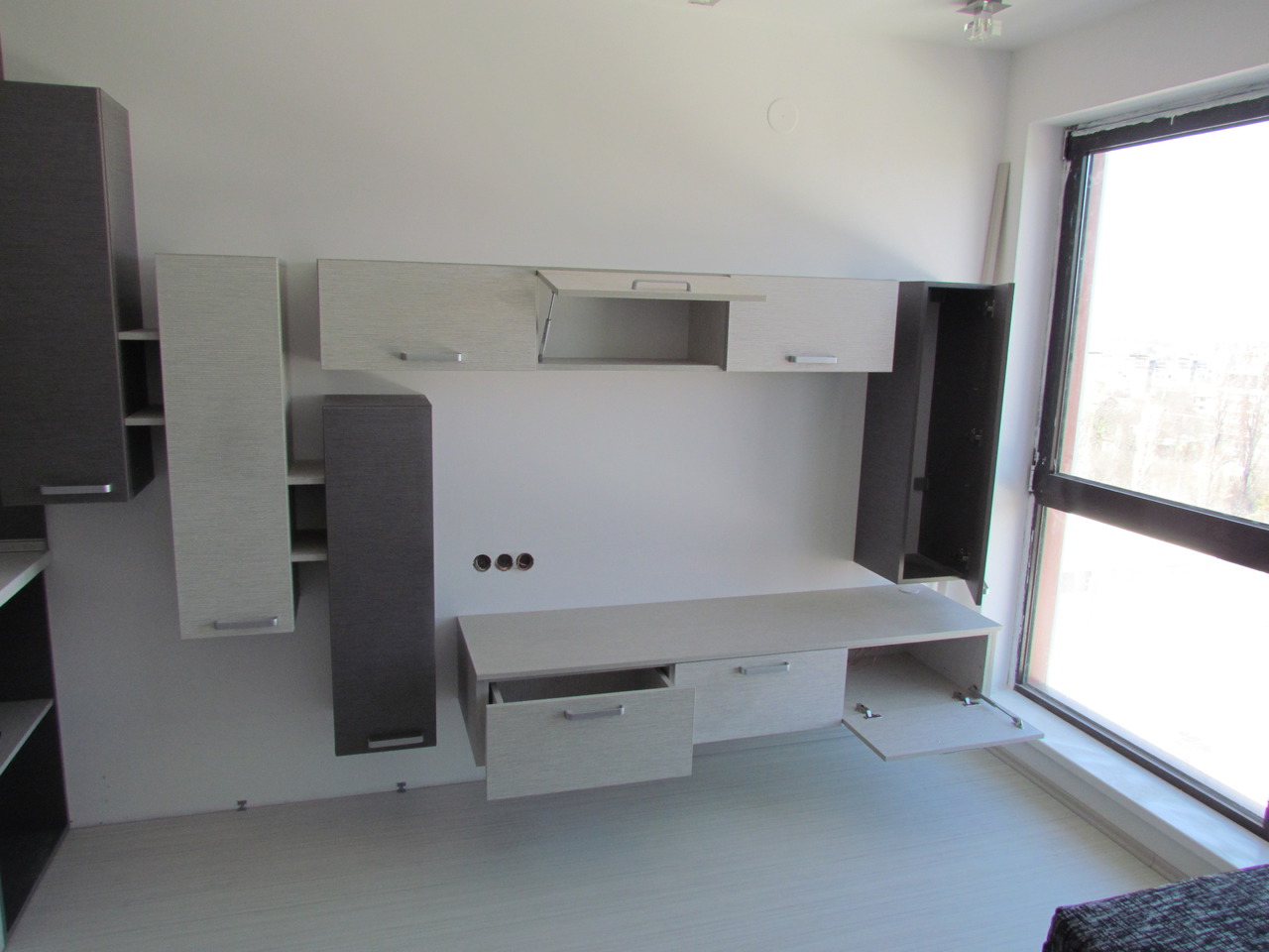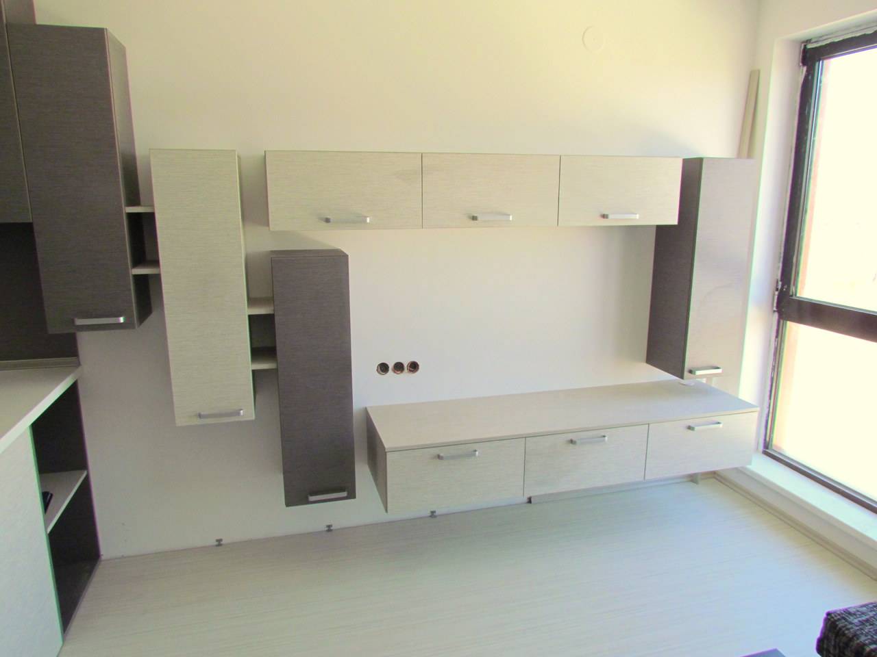 Тв шакфа е модерени и иновативно решение за холното пространство или всекидневната. Той е продължение на кухнята, като запазва линията и повтаря мотивите на кухненските шкафове, така изгражда плавен преход към пространството на всекидневнта. Шкафа е изцяло решен на стената, като компактната му линия му придава стил и елегантност без да отстъпва на функциалността. Този модел, както всички останали мебели по поръчка. Шкафът се изработва в богата цветова гама и индивидуални размери.