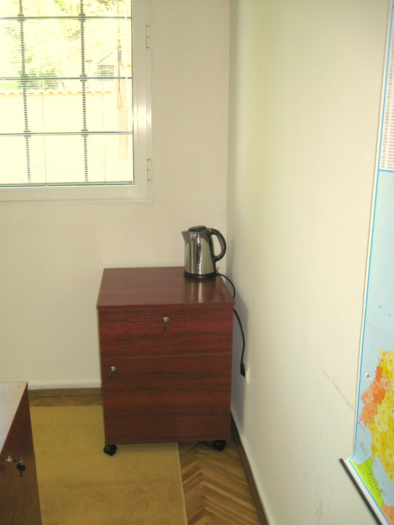 Стандартно изпълнен комод за офиса. Изработка изцяло от ПДЧ и висококачествен мебелен обков. Комода включва чекмедже и шкафче с ключални. Изработва се в богата цветова гама и размери на клиента.