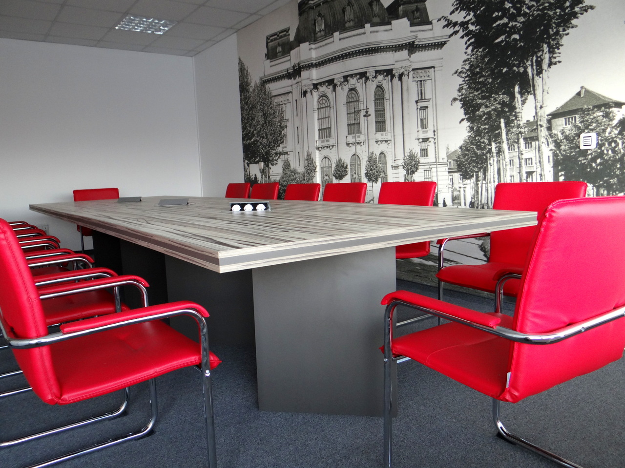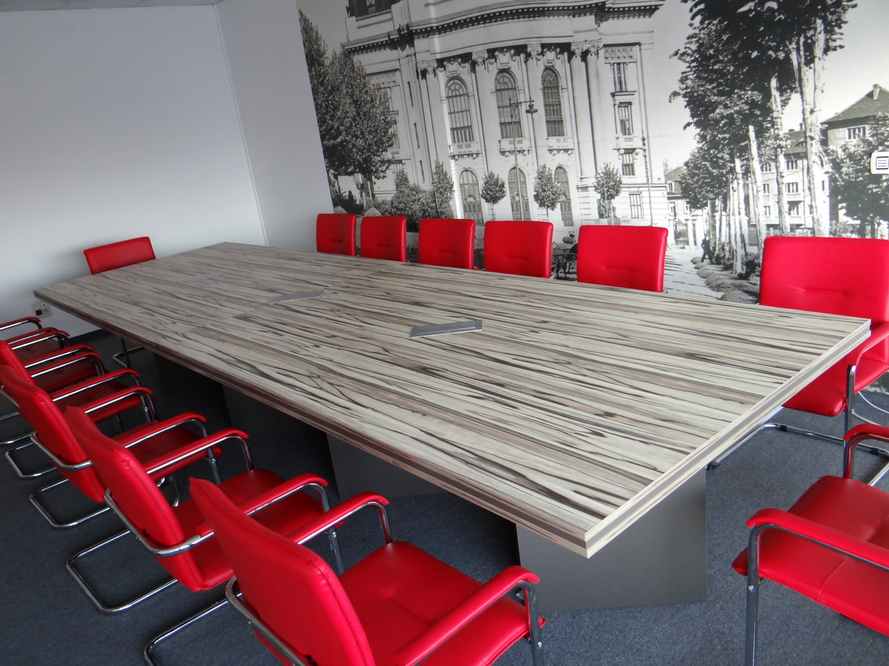 Тази конферентна маса е изработена от ПДЧ , като плота и е решен в цвят Артууд. Краката на масата същи са от ПДЧ цвят лава. В заседателната маса са вградени кутии за кабели и контакти в цват инокс. Акцент за тази конферентна маса освен атрактивния декор е и трислойния плот.