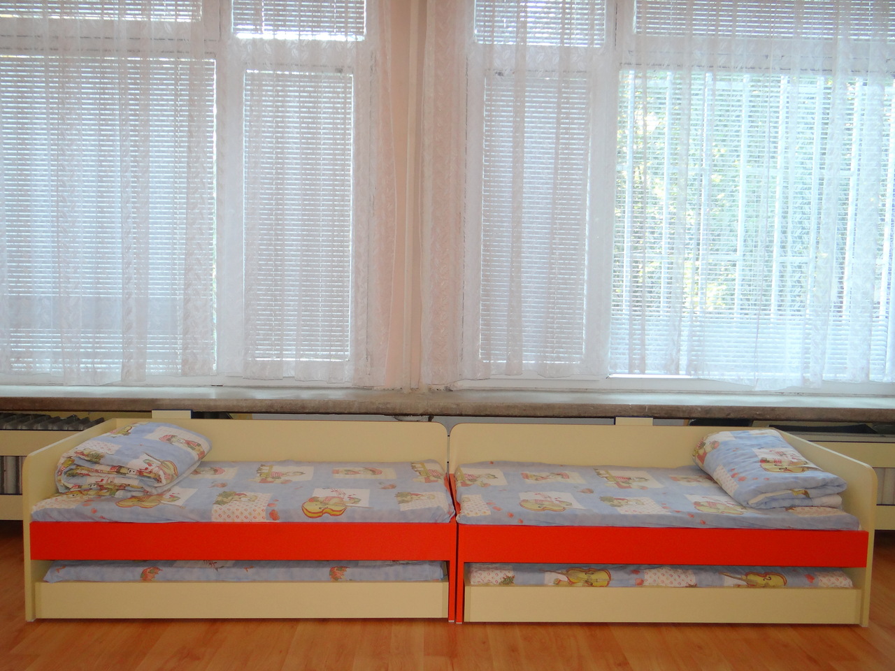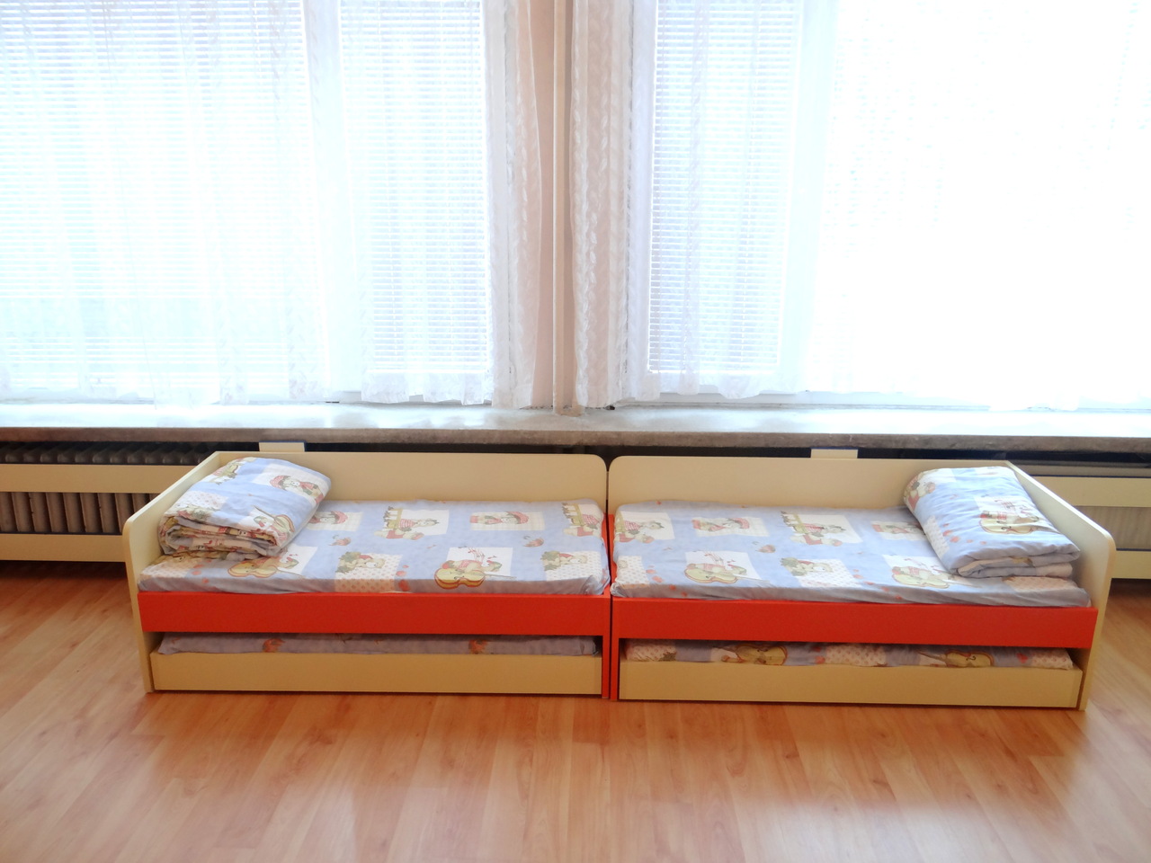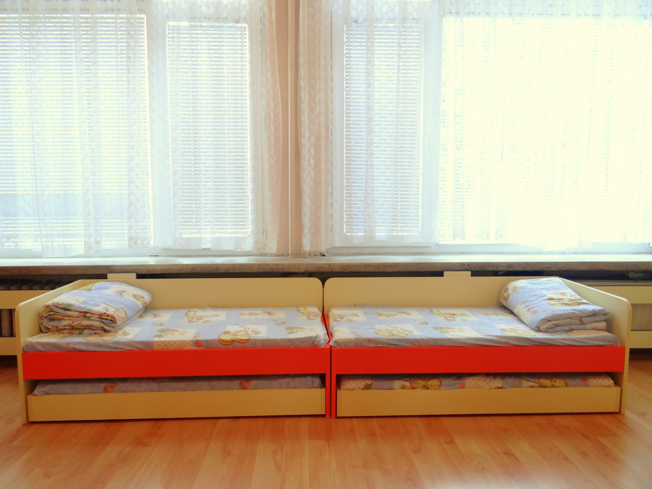 Тези легла са много практични и предпочитани от детски градини или детски стаи с ограничено пространство в спалното. Леглата могат да бъдат изработени в различни цветови комбинации. Тид Мебел предлага също така детски матраци със свалящ се калъф.