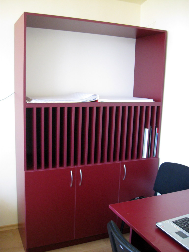 Това офис обзавеждане е специализирано за училищните нужди. Дизайнът е семпъл и изчистен, като е заложено най-вече на функциалността - архивен шкаф за документи с отделения за училищните дневници. Шкафа може да се изработи по размери на клиента в богата цветова гама.