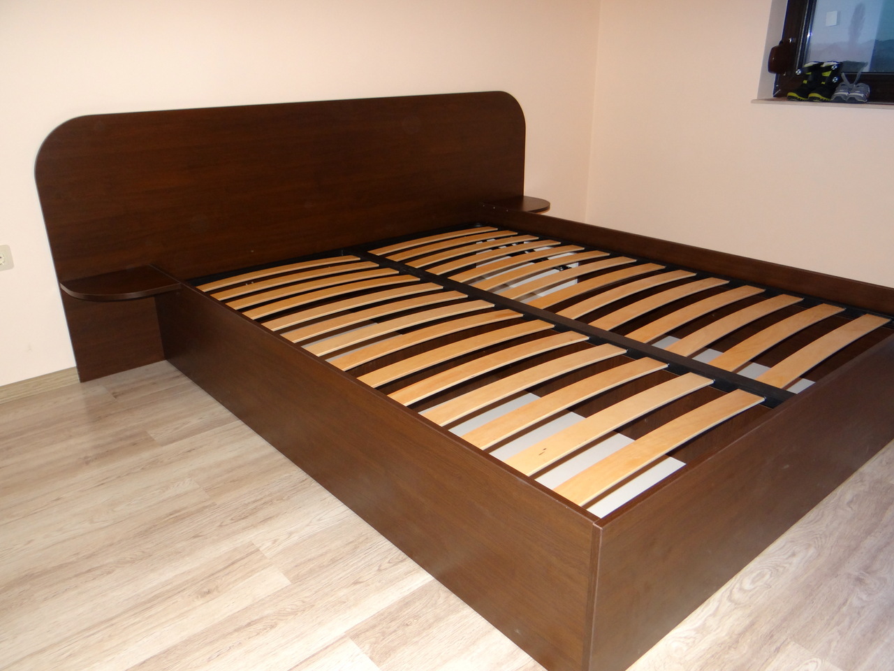 Спалнята е с изчистени линии и табла със заоблени ъгли. Към спалнята няма нощни шкафчета а само плотчета със заоблени ъгли, тъй като семейството има малко дете. Спалнята е с подматрачна рамка и механизъм за повдигане на подматрачната рамка. Модела се изработва в различни размери и в богата цветова гама по индивидуалните желания на клиента.